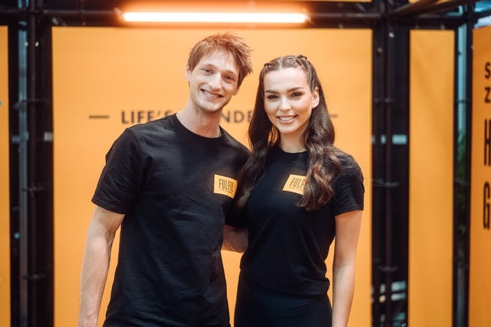 Auch die beiden Markenbotschafter Lili Paul-Roncalli und Moritz Hans waren für FULFIL auf der FIBO in Köln im Einsatz und sorgten dort für jede Menge spannende Momente. So traten bei der „Beat the Best“-Challenge zahlreiche motivierte Besucherinnen und Besucher an der Himmelsleiter gegen Moritz an, der insbesondere für seine Kraft, Ausdauer und Schnelligkeit nicht nur an der Kletterwand bekannt ist.