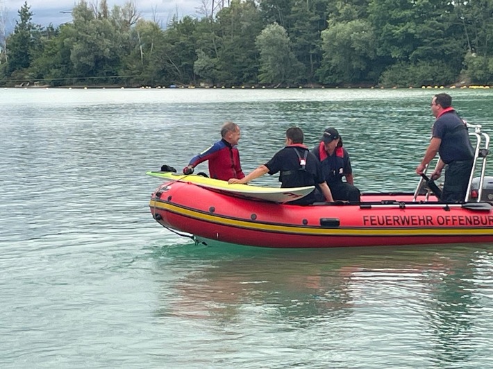 Freitag, 18. Juli, 18:00 Uhr, Schutterwälder Baggersee / Südseite: Ein Surfer kollidiert mit einem Schlauchboot, alle drei Wassersportler geraten in eine lebensbedrohliche Notlage, eine Person verschwindet sogar von der Wasseroberfläche. Badegäste am Ufer beobachten das Unglück und setzen den europaweiten Notruf 112 ab.