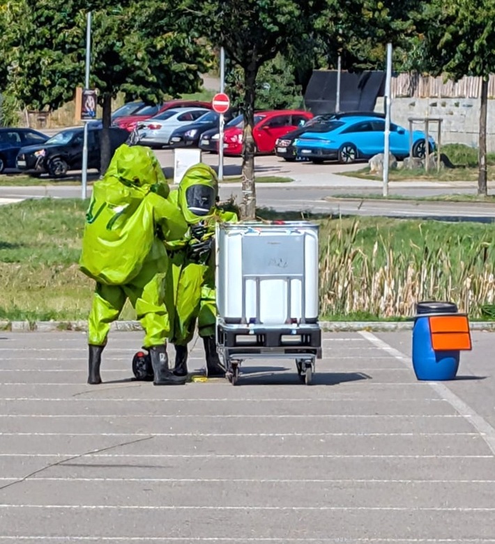 Im Fokus stand dabei das Erkennen und Eindämmen eines austretenden unbekannten Stoffes, die Dekontamination von Einsatzkräften.