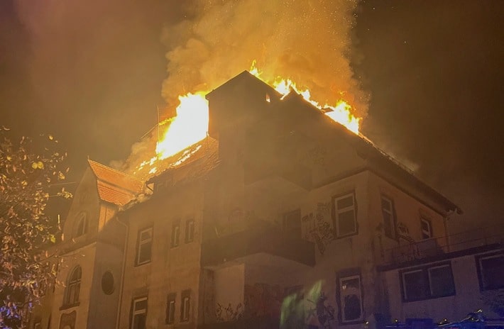 Gegen 22.00 Uhr alarmierte die integrierte Leitstelle in Calw (ILS) die Feuerwehren Schömberg und Bad Wildbad zu einem Zimmerbrand im 4. Obergeschoss an der Charlottenhöhe in Schömberg. Dieser breitete sich sehr schnell zu einem offenen Dachstuhlbrand in dem leerstehenden Gebäude aus. Um ein Großfeuer mitten im Wald zu verhindern wurde für Schömberg Gesamtalarm ausgelöst. Ebenso wurde die Feuerwehr Bad Wildbad zum Einsatz hinzualarmiert. Es musste mit zwei Drehleitern und insgesamt acht weiteren Löschrohren gelöscht werden um ein weiteres Ausbreiten auf Gebäude und den angrenzenden Wald zu verhindern. Die Trupps die im Innenangriff mit Löscharbeiten beschäftigt waren mussten im Laufe der Löscharbeiten zurückgezogen werden, da der statische Zustand des Gebäudes immer labiler wurde. Somit hat die Einsatzleitung entschieden das Gebäude nur noch von außen zu löschen, denn die Mengen an Löschwasser hat die Statik des Gebäudes nicht besser gemacht. Insgesamt waren zehn Trupps mit den Löscharbeiten beschäftigt. Gegen 0.15 wurde die Drohne des Gemeindeverwaltungsverband Althengstett zur Einsatzstelle alarmiert, so konnten effektiver Brand- und Glutnester ausfindig gemacht werden.