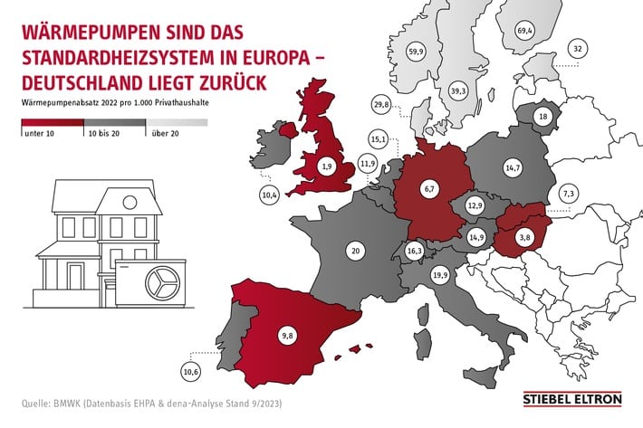 „In den skandinavischen Ländern unterstützt die Politik den Einsatz erneuerbarer Heiztechnik seit Jahren konsequent“, sagt Dr. Kai Schiefelbein, Geschäftsführer von Stiebel Eltron. „Das günstige Verhältnis vom Strom- zum Gaspreis ist dabei ein wichtiger Erfolgsfaktor, der die Wärmepumpenheizungen für die Verbraucher attraktiv macht.“