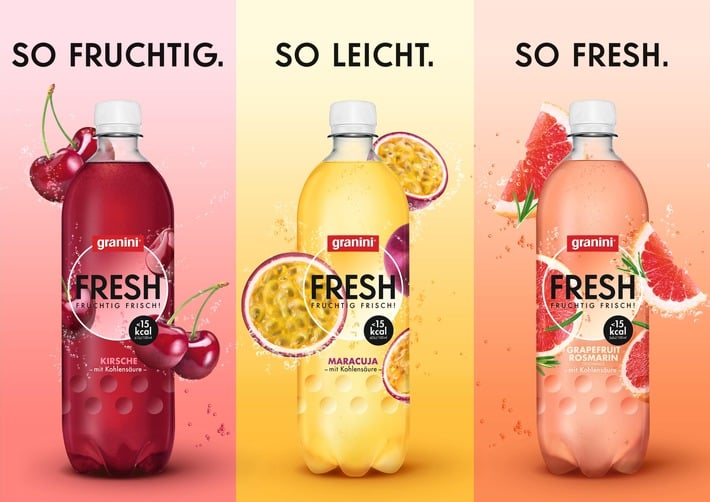 – So fruchtig. So leicht. So FRESH. – Neue Erfrischung von granini mit echten Früchten und weniger als 15 kcal (62 kJ) pro 100 ml