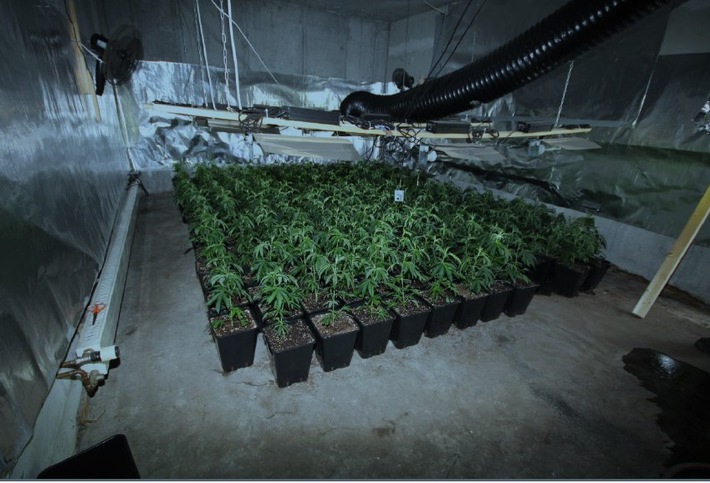 Mit einem Großaufgebot an Polizeikräften wurde das Haus durchsucht. Vor Ort stellten die Ermittler zwei aktive und zwei inaktive Aufzuchtsplantagen sowie zwei Trocknungsräume fest. Dort soll der Beschuldigte die 483 Pflanzen mit Pflanzerde und Düngemitteln versorgt haben. Für die Aufzucht der Cannabispflanzen waren die genutzten Räume mit Belüftungs- und Beleuchtungsanlagen ausgestattet. Auch kamen Bewässerungspumpen zum Einsatz. In den Trocknungsräumen befanden sich mindestens 30 Kilo – an bereits abgeernteten – Marihuana Blüten. Für den Beschuldigten war in dem Gebäude zudem eine rudimentäre Schlafmöglichkeiten eingerichtet.