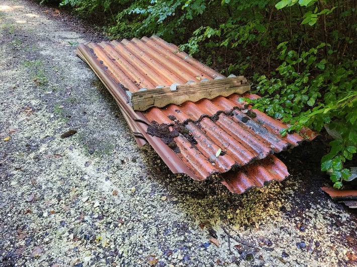 Die insgesamt 23 mutmaßlich asbesthaltigen Platten legte ein Unbekannter in den vergangenen Wochen auf einem Feldweg ab. Der Ablageorte befindet sich links neben der B10 zwischen Luizhausen und Urspring an einem Wald, etwa auf halber Strecke zwischen zwei Parkplätzen. Bisherige Ermittlungen der Beamten von Gewerbe und Umwelt verliefen ohne Erfolg, weshalb die Spezialisten jetzt auf Hinweise aus der Bevölkerung hoffen. Wer jemanden beim Abladen der umweltgefährdenden Platten beobachtet hat, sich an einen möglicherweise in diesem Zusammenhang stehenden Abriss erinnert oder sonstige sachdienliche Hinweise geben kann, soll sich bitte unter der Telefon-Nr. 0731/188-0 bei der Polizei Ulm melden.