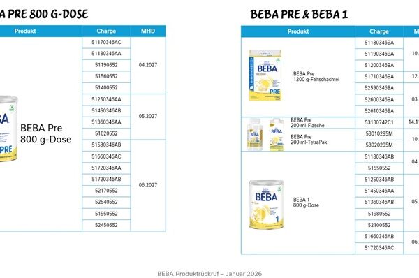 Vorsorglicher Rückruf von verschiedenen BEBA- und ALFAMINO-Produkten