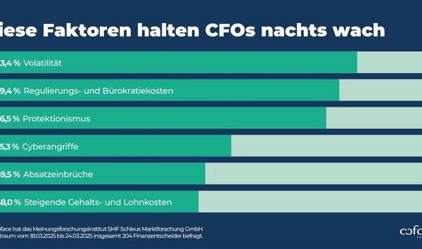 Mainz (ots) – Die schwankende Konjunktur bringt Finanzverantwortliche deutscher Unternehmen um ihren Schlaf. Für 83 Prozent von ihnen ist die…
