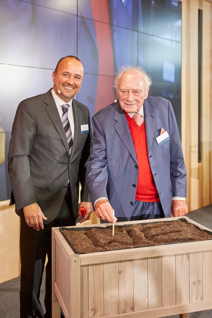 „WE enable to grow“, war das Motto bei der Eröffnungszeremonie: Nachdem Reinhold Würth den Ersteintrag im Gästebuch des HIC vorgenommen hatte, platzierte er mit demselben Stift Samenkörner in einem Hochbeet.